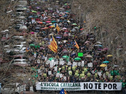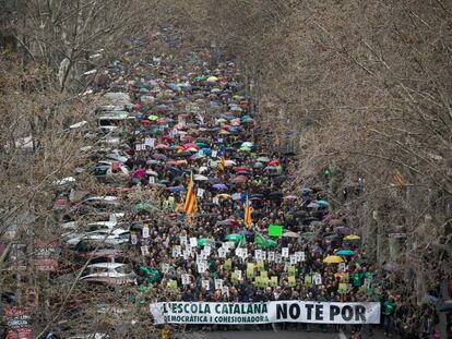 Los manifestantes rechazan la intención del Gobierno español de aumentar las horas de clase en lengua castellana