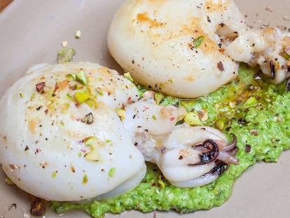 Un tzatziki de manzana ácida, una ensalada de pulpo y patata, unas gambas tahitianas con vainilla y coco o unas rocas de chocolate con crema de queso: si llevas mal el calor, este menú es para ti.