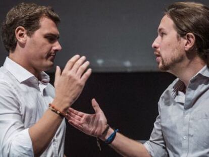 Iglesias y Sánchez coincidieron en querer colocarle la etiqueta de derechas a Rivera
