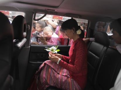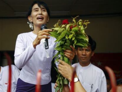 La líder de la oposición civil al poder del Ejército, vencedora de las elecciones de 1990 -tumbadas por los militares- y reprimida por dos décadas, opta a un escaño