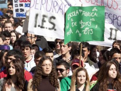 Decenas de miles de estudiantes se han manifestado hoy en protesta por los recortes en Educación. A ellos se han unido padres, profesores y otros ciudadanos.