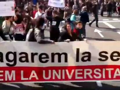 Decenas de miles de estudiantes y trabajadores participan en dos marchas contra los recortes Los Mossos acordonan el recinto del congreso de móviles tras la quema de 'containers' en la UB Los indignados toman el pleno del distrito de Gràcia
