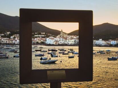 En Cadaqués se puede ver uno de los marcos de acero corten instalados durante el centenario de la marca turística Costa Brava