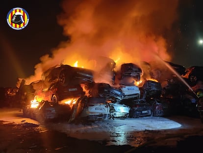 Extinguido el fuego en una campa con vehículos en Catarroja tras el de Alberic, que obligó a desalojar tres residencias. La Generalitat se reúne con el Gobierno para analizar las medidas de seguridad