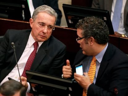 El expresidente colombiano se defiende de las acusaciones en un acalorado debate en el Congreso