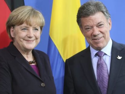 El presidente de Colombia recibe el apoyo político de la canciller alemana al proceso de paz