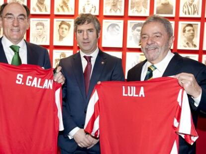El expresidente de Brasil ha estado acompañado por el presidente del Athletic, Josu Urrutia, y el de Iberdola, Ignacio Sánchez Galán