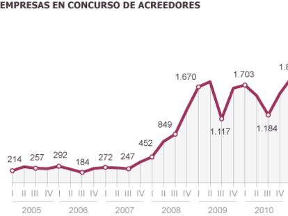 La estadística del INE muestra que 2.854 sociedades cayeron bajo el peso de la deuda El número de personas que se declaran en concurso se reduce un 31%, hasta las 193