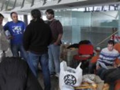 Los trabajadores de la compañía en Loiu mantienen su encierro en el hall del aeródromo