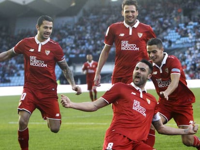 Tres goles del capitán del Sevilla resuelven con más contundencia de la merecida el duelo táctico en Balaídos entre Berizzo y Sampaoli