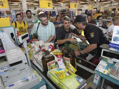 Unas 50 personas, lideradas por un diputado de IU, asaltan la tienda en protesta por los recortes La acción imita a la realizada por el Sindicato Andaluz de Trabajadores a principios de agosto