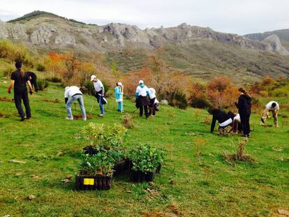 Un centenar de voluntarios reforesta en la localidad leonesa de Castrocontrigo cuatro hectáreas de bosque arrasadas por las llamas, en una iniciativa impulsada por esta empresa para luchar contra la deforestación