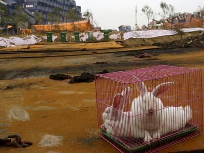 Trabajadores del puerto colocan animales en la "zona cero" para probar la calidad del aire