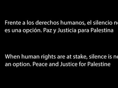 “Frente a los derechos humanos, el silencio no es una opción. Paz y Justicia para Palestina”. Ese es el mensaje que la retransmisión de La 1 ha sobreimpresionado al inicio. Antes, la UER amenazó con multar a la corporación pública si sus comentaristas volvían a mencionar el conflicto