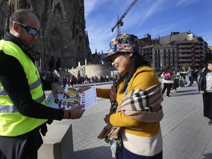 Los agentes reparten dípticos en la Sagrada Familia criticando la falta de policías
