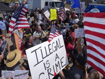 Varios extremistas impiden la entrada de mujeres y niños inmigrantes en un centro de California