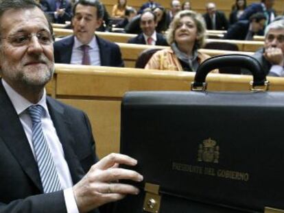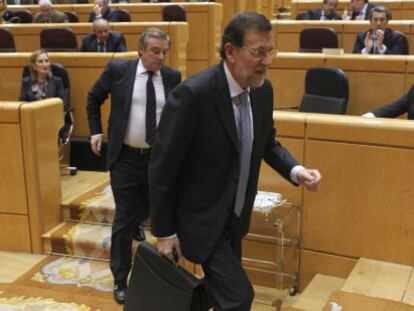 El jefe del Ejecutivo rehúye responder a los periodistas en el pasillo del Senado