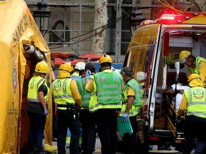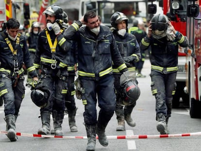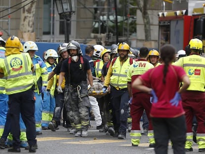 Los bomberos han tenido que rescatar de debajo de los escombros al fallecido y a otros tres operarios