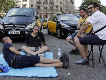 Los taxistas acampan en la Gran Vía para protestar contra la suspensión cautelar de la normativa de la AMB