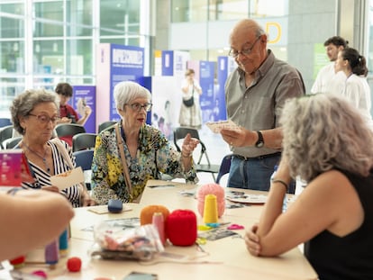 Costura, aire y compañía en el vestíbulo del Hospital Sant Pau: “Me siento solo y necesito hacer actividades”