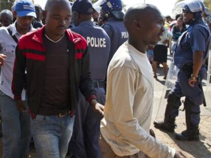 La actuación de los agentes revive la matanza de 34 trabajadores el pasado agosto Los empleados se niegan a volver a la mina pese al acuerdo entre los sindicatos y la empresa
