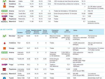 Solo Vodafone y Orange, y Movistar para datos, sacan tarifas planas más baratas que las fijadas a partir del 1 de julio