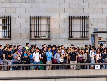 En el aeródromo se amontonan viajeros llegados a Madrid que intentan subirse a un taxi o a un autobús, y otros que han perdido sus vuelos y esperan respuesta de sus aerolíneas
