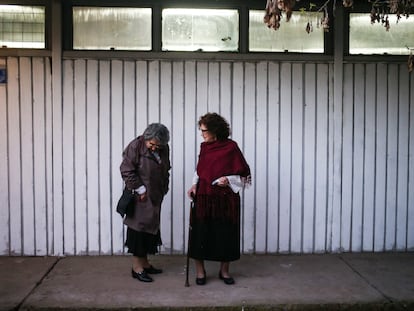En la entrada del centro sanitario, convertido en refugio climático, un puñado de ancianos ventilan el cuerpo y la mente un rato. Escapan del sol y de la soledad
