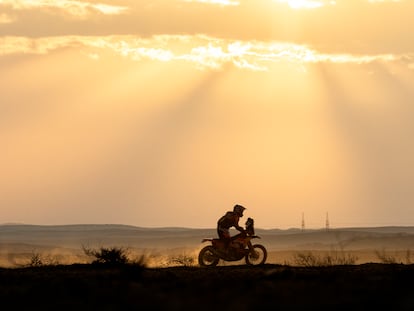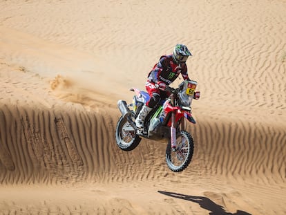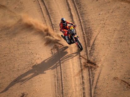 El piloto valenciano de 28 años, sustituto de Joan Barreda en Honda, se estrena por todo lo alto en su primera participación en el rally con una moto oficial; Carlos Sainz empieza lejos de la cabeza