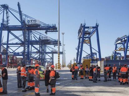 Cerca del 100% de los estibadores secundan la primera jornada de huelga en el recinto valenciano