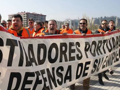 En el puerto de Algeciras, el de mayor tráfico del país, 1.800 de los 6.000 estibadores que hay en España se conjuran para rechazar la reforma del sector