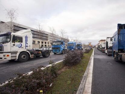 Unos 80 profesionales protestan con sus camiones frente a la sede del Ejecutivo en Vitoria