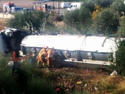 El conductor ha sufrido un politraumatismo Los bomberos intentan contener la fuga del hidrocarburo