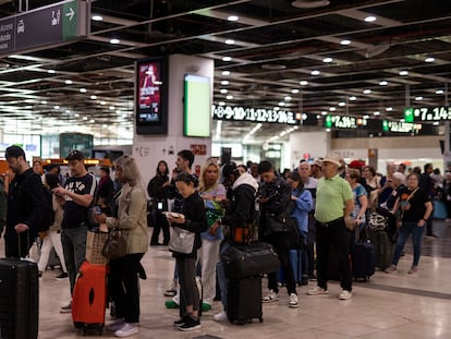 A pesar de que se van reanudando los trenes de alta velocidad, son tantos los pasajeros que se aglomeran para intentar llegar a sus destinos que en la estación se respira incertidumbre y malestar
