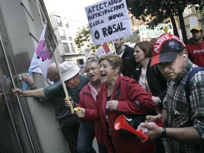 Los sindicatos convocaron la protesta después de que afectados de las participaciones preferentes ocupasen las instalaciones