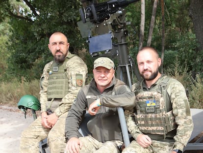 Dos ametralladoras, un lanzamisiles y un vehículo con una plataforma de tiro forman las unidades móviles de la Fuerza Aérea ucrania especializadas en el derribo de aparatos no tripulados. EL PAÍS se da cita con una de ellas
