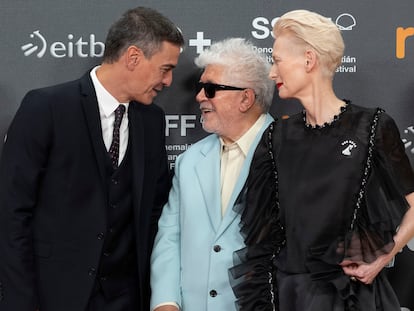 El cineasta, muy emocionado, recoge el premio Donostia en presencia del presidente del Gobierno antes de la proyección de ‘La habitación de al lado’