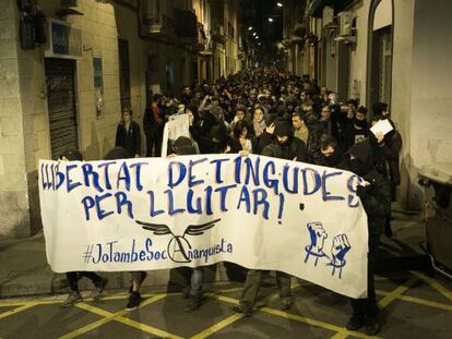 Un millar de manifestantes, entre ellos seis diputados de la CUP, marchan contra la detención de nueve anarquistas por terrorismo