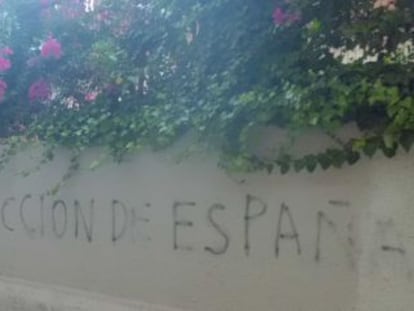 Una pintada amenazante sobre el colegio público de Valencia con el nombre del escritor advierte: “En colegios como este comienza la destrucción de España”