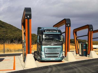 La ruta Barcelona-Lyon cuenta ya con tres áreas para recargar vehículos pesados y en España ya hay cientos de estos puntos de recarga ultrarrápidos, clave para descarbonizar el transporte por carretera