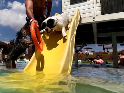 Vídeo | Un parque acuático canino, el refugio del calor para las mascotas y sus dueños