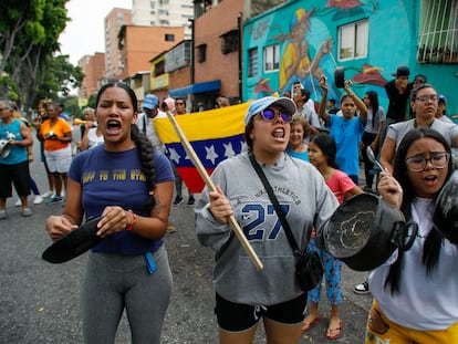 Vecinos de Petare y otros sectores populares de Caracas salen a protestar en medio de un enorme despliegue policial contra los resultados anunciados por la autoridad electoral