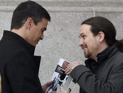 El líder de Podemos le regala un libro con una dedicatoria: "Es bueno empezar por lo que nos une"