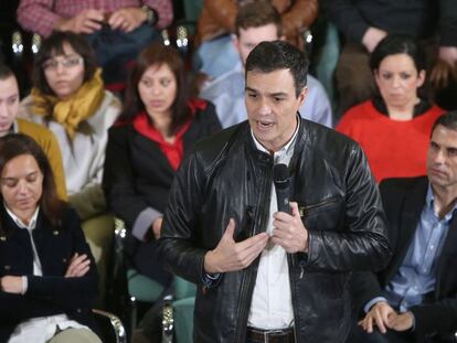 El líder del PSOE, reunido con militantes, critica que Iglesias no apoye a un candidato socialista