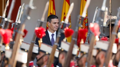 Una princesa con el uniforme de gala del Ejército de Tierra; 82 aeronaves; 210 caballos; 4.177 militares; por primera vez una mujer, la caba María del Carmen Gómez Hurtado, protagonizando la parte más vistosa: el descenso en paracaídas con una bandera de 55 metros cuadrados y 15 kilos de peso... Y, sin embargo, fue el nombre de un terrorista, Txapote, el protagonista en X (antes Twitter) de la Fiesta Nacional. Víctimas del terrorismo han mostrado en multitud de ocasiones el dolor que les causa escuchar la “indigna” frase “Que te vote Txapote”, pero eso fue lo que corearon asistentes al desfile en Madrid. Los abucheos a Pedro Sánchez se han convertido en una tradición dentro de la tradición; el lema ya es una especie de himno popular que este jueves sonó antes y después del oficial.