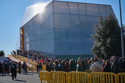 A las 10 de la mañana del domingo, el Palacio de Congresos que lleva su nombre recibió a miles de personas con una cola de varios kilómetros que zigzagueaba por la carretera. Así, 14 horas. Familias, amigos, parejas, abuelos, niños. También algún famoso. Y cantantes conocidos. Todo, para un último adiós de un puñado de minutos.