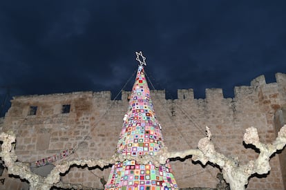 Los Reyes Magos, en una calle de Presencio (Burgos).Virginia VillacislaCaseta del conserje de un portal con decoración navideña.Virginia VillacislaPegatina de Papá Noel en un coche.Virginia VillacislaMesa con piña y frutas decoradas. Virginia VillacislaÁrbol de ganchillo frente a una muralla de Presencio (Burgos).Virginia Villacisla