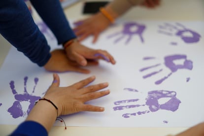 Mujeres encarceladas creaban el miércoles pancartas para el 8-M, en la prisión mexicana de Barrientos. Sáshenka Gutiérrez (EFE)