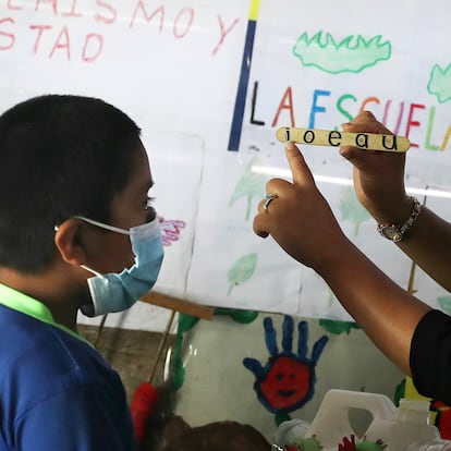 César Enrique Bol Coy vive en una de las muchas casas sin electricidad de Alta Verapaz, Guatemala. En este departamento solo uno de cada cinco hogares cuentan con luz. Y en otros cuatro la red eléctrica no supera el 80%. Aquí no llegaron los programas de Aprendo en casa del Ministerio de Educación que se emitían periódicamente en la radio y la televisión. Para que este niño con discapacidad cognitiva y psicomotriz pudiera cursar tercero de Primaria durante la pandemia, la ‘seño’ Carmen Cú Tipol ha sido fundamental. Y la madre de César, quien tuvo que aprender de memoria el temario de su hijo para repasarlo con él cada tarde. Incansables, los padres de familia y los profesores han cargado también con el peso de un año de educación a distancia.