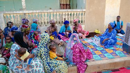 Esta tarde hay unas 30 madres. Sentadas en círculo en un patio, comentan las imágenes que les muestran. Ahora se ve a alguien darle agua a un bebé. “¿Por qué hay que rechazarla?”, pregunta la monitora. “Porque la leche materna ya tiene todo lo que necesita el niño”, dice una. Hawa Pathé Sow, de 37 años, ha acudido con su bebé de cinco meses. Tiene otros dos, y viene porque no quiere que se repita la desnutrición que sufrió el mayor. “Le di el pecho muy poco tiempo, prioricé las tareas de la casa, otras cosas”, cuenta. Su marido es guardia de seguridad y dice que logran comer tres veces al día, pero que lo más difícil es diversificar. Los precios ahora son demasiado altos y ha empezado a hacer ajustes. “En vez de cinco barras de pan, ahora cojo tres al día; antes compraba pescado fresco, ahora solo podemos comprarlo seco o piezas pequeñas. Me preocupa terminar quitando el pescado y la verdura”, cuenta.